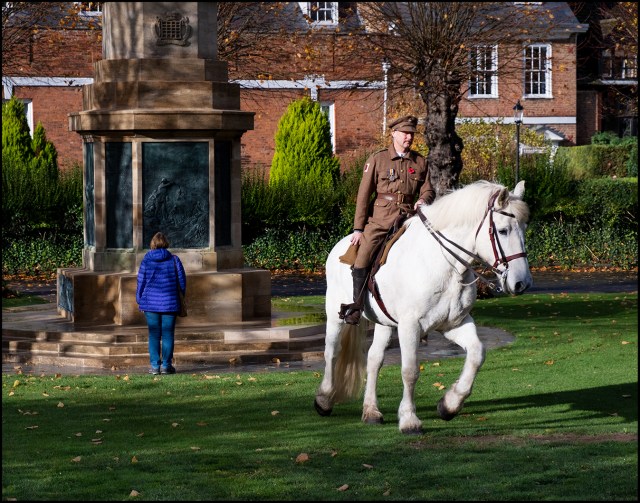 11th November 2018. This horse is given a welcome stretch after the formal parade.
