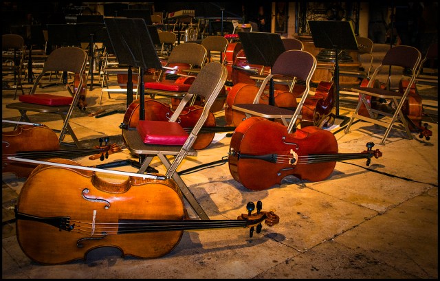 York University Orchestra’s cello section have a rest during a concert at York Minster.