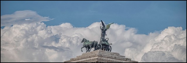 Taking off to save humanity. A liberty statue on the roof of a Rome Museum, 2018.